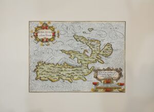 Questa riproduzione di una stampa antica (originale di Cantelli del 1695) è stata impressa con il torchio a mano su carta pregiata e acquarellata a mano da pittori esperti.