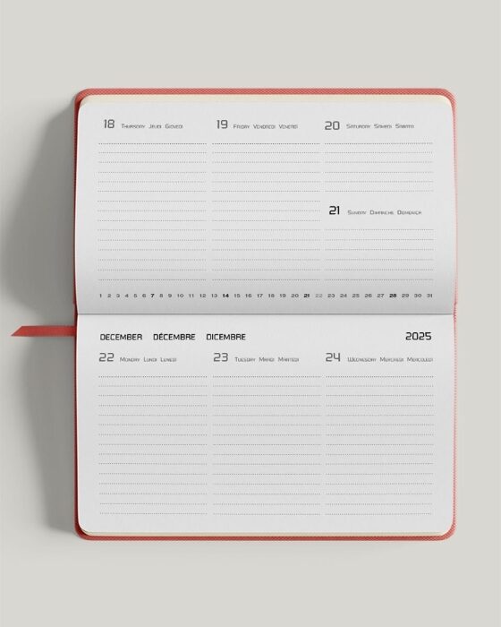 I paesaggi sanno sempre ispirare, anche quando appaiono sotto le vesti di una splendida illustrazione che fa capolino sulla copertina di un’agenda. D’altronde anche i viaggi vanno pianificati e non c’è niente di meglio che segnarli sul proprio planner personale! Se poi dovrai annotare anche gli impegni di lavoro e gli appuntamenti, ti basterà sfogliare le pagine per vedere avvicinarsi sempre più il viaggio dei tuoi sogni! Vacanze a parte, questa agenda settimanale del 2026 ti dà la possibilità di organizzare al meglio anche le giornate più frenetiche: molto spaziosa e chiara, è perfetta per avere una visione d’insieme sugli impegni della settimana, così da non dimenticarne nemmeno uno e non arrivare tardi a nessun appuntamento. E alla fine, ciliegina sulla torta, avrai a disposizione tante pagine dedicate alle note libere, ideali per buttar giù i tuoi pensieri, le tue intuizioni o gli appunti da tenere a mente per il tuo prossimo viaggio!