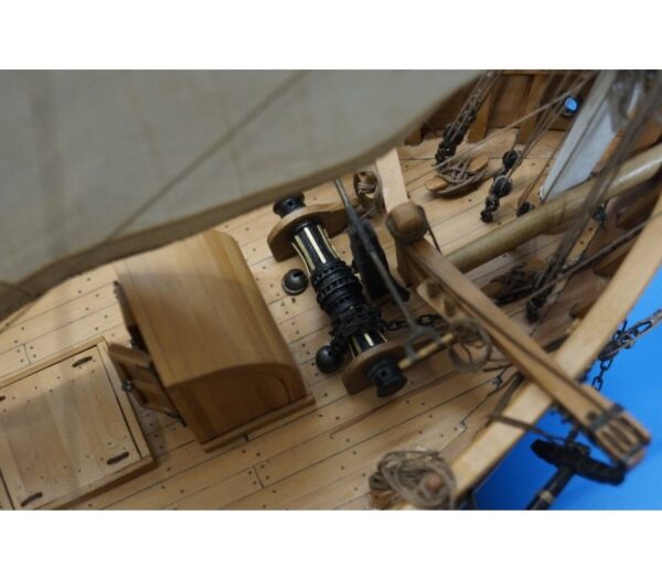 15. Scafo terminato. Posizione delle manovre relative alla velatura e illustrazione dei dettagli sulla vista orizzontale.