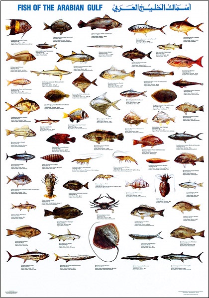 Poster with 60 of the most common fish and shellfish species of the Arabian Gulf.