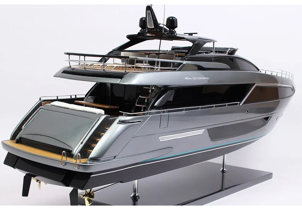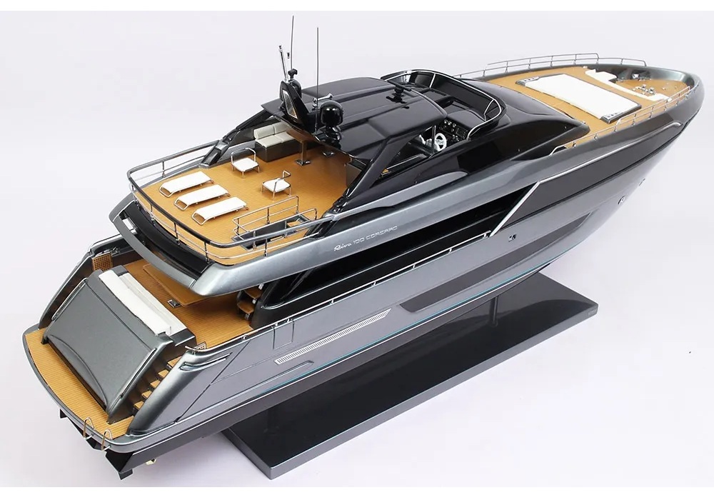 A truly exceptional object: this exclusive official model of the Riva Corsaro was created in collaboration with the Riva shipyard. It is a faithful replica of the legendary Corsaro, entirely handcrafted with high-quality materials: true fiberglass and authentic nautical upholstery. All accessories are custom-made in chromed brass by expert jewelers. Ten layers of varnish are applied to obtain excellent shine and depth, for an exceptional finish.