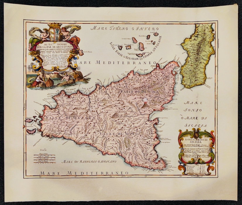 Questa riproduzione di una stampa antica (originale di Cantelli del 1695) è stata impressa con il torchio a mano su carta pregiata e acquarellata a mano da pittori esperti.