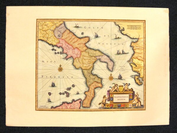 Questa riproduzione di una stampa antica (originale di Jansonium del 1645) è stata impressa con il torchio a mano su carta pregiata e acquarellata a mano da pittori esperti.