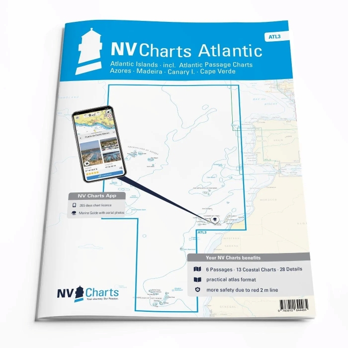 If you want to embark on the great adventure of crossing the Atlantic, the NV Charts Atlantic ATL3 is ideally equipped. Thanks to the clear layout, the recreational skipper can quickly find approaches, harbours and anchorages and is informed of navigationally important details that also appear in the NV Charts app. The chart series impresses with its optimised dimensions and balanced sheet sections. The Atlantic Islands – the archipelagos of Madeira, the Canary Islands, the Azores and Cape Verde – are also described in detail in this atlas. If you want to go there, you may be drawn even further towards the Caribbean. But the map set is also ideal for travelling to or from the respective island groups.