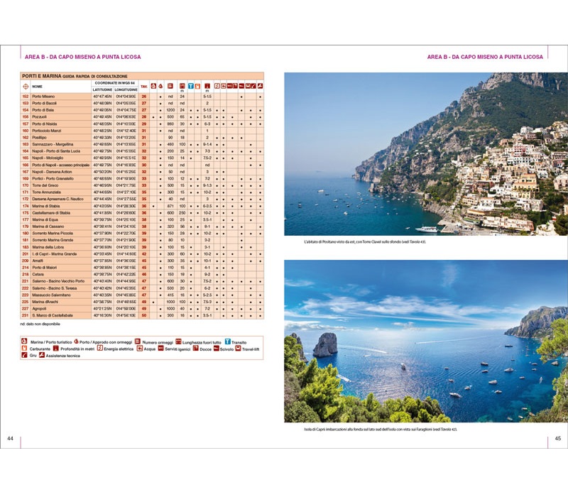 Il volume è suddiviso in due macrozone per ognuna della quali vi è una guida rapida dei principali porti e marina con i relativi servizi (erogazione di acqua e corrente, carburante, assistenza tecnica, contatti, ecc.). Basta, dunque, un rapido sguardo per essere in grado di scegliere il porto più adatto in base alle caratteristiche della propria barca e alle condizioni meteo. Il portolano è molto dettagliato e descrive tutti i porti e le numerose baie per l’ancoraggio. Una esaustiva gamma di pittogrammi riportati nei piani ne facilita l’immediata consultazione. In tutti i piani sono presenti due icone, che indicano rispettivamente venti di traversia e lunghezza e pescaggio massimi consentiti per l’accesso a porti e marina. Brevi testi forniscono i contatti utili e le informazioni di pilotaggio necessarie per una navigazione sicura.