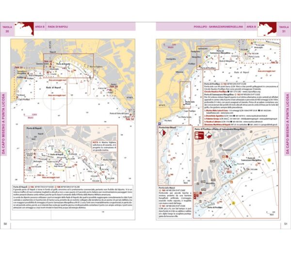 Questo portolano descrive in 50 tavole cartografiche le coste del Mar Tirreno centrale da Capo Circeo a Punta Licosa, comprese le isole antistanti: Isole Pontine (Ponza, Zannone, Palmarola), Ventotene e Santo Stefano, Ischia, Capri e Procida.