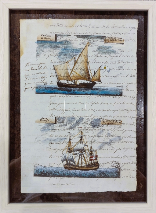 quadro “bastimenti su carta antica – navicello di massa e orca danese”