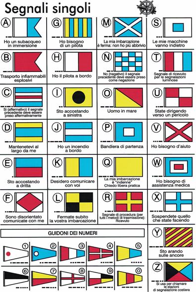 Adesivo raffigurante i segnali singoli per la navigazione in lingua italiana.