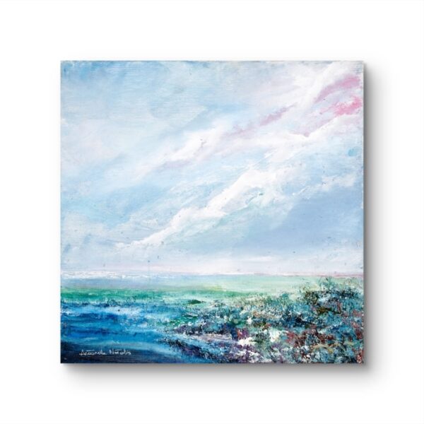Per Antonella Natalis, il mare è il veicolo che permette all’anima di compiere viaggi infiniti. La pittura è la pace nel tumulto interiore, un privilegio che le consente di esprimere liberamente ciò che sente. Solo quando un dipinto viene letto, interpretato e sentito da chi lo osserva, quando diventa parte di qualcun altro e suscita emozioni, l’artista trova il vero senso del suo lavoro.