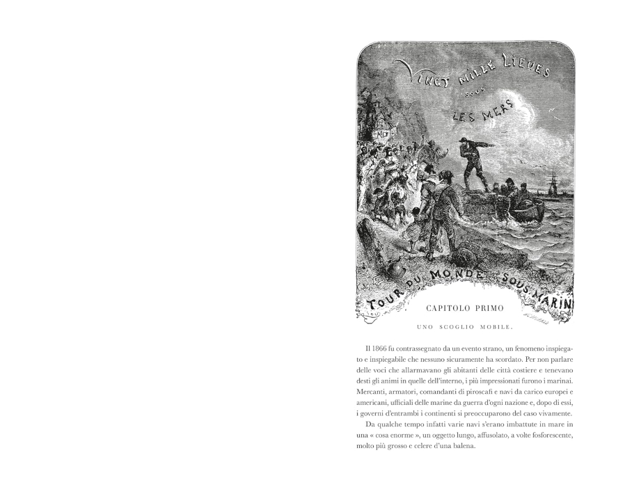 Il 1866 fu contrassegnato da un evento strano, un fenomeno inspiegato e inspiegabile che nessuno sicuramente ha scordato. […] Da qualche tempo infatti varie navi s’erano imbattute in mare in una « cosa enorme », un oggetto lungo, affusolato, a volte fosforescente, molto più grosso e celere d’una balena.