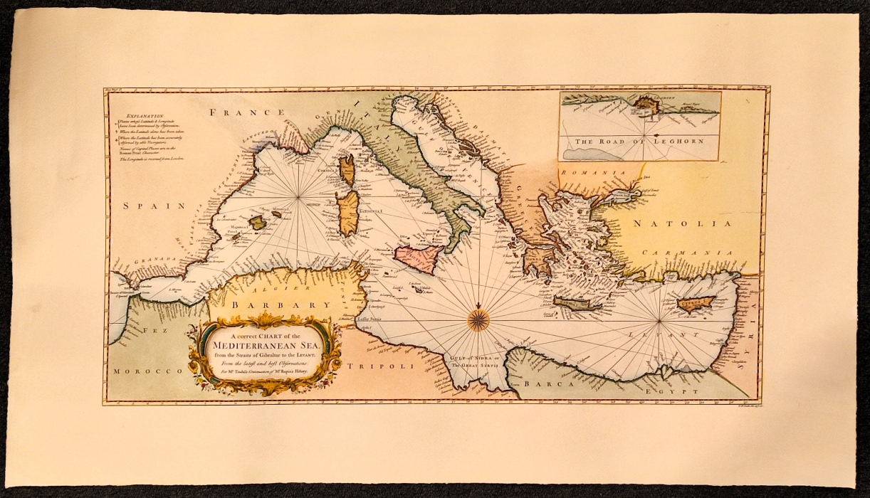 Questa riproduzione di una stampa antica (originale di Tindall del 1725) è stata impressa con il torchio a mano su carta pregiata e acquarellata a mano da pittori esperti.