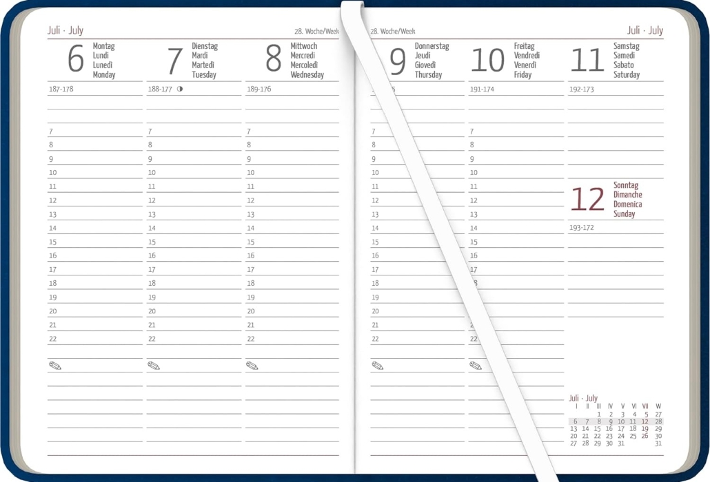 Pratica agenda settimanale in formato tascabile, con: