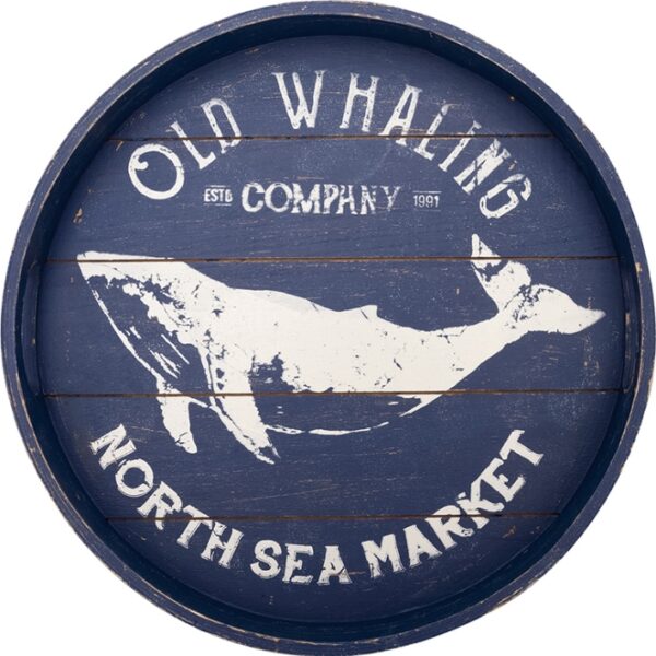 Stampa “Old Whaling Company – North Sea Market” e balena in bianco.
