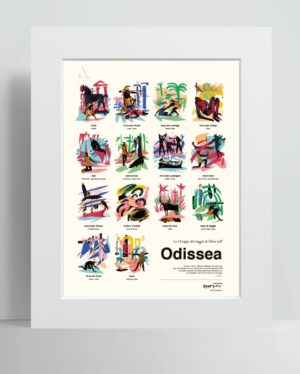 Stampa su cartoncino tinto a macchie di caffè e acquarellata a mano ispirata al romanzo Ventimila leghe sotto i mari di Jules Verne.