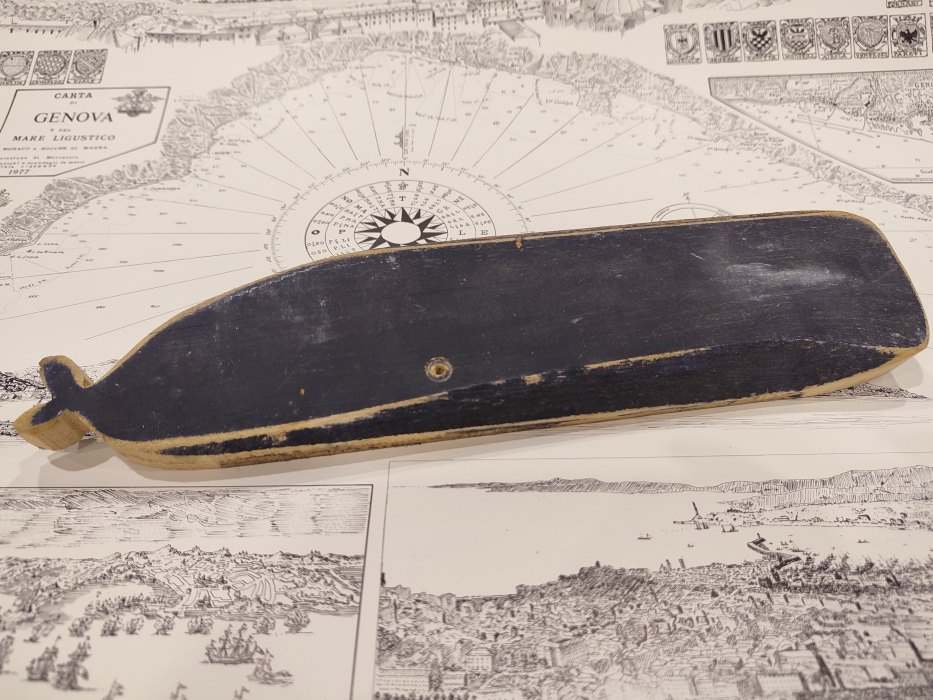 balena di legno da appendere