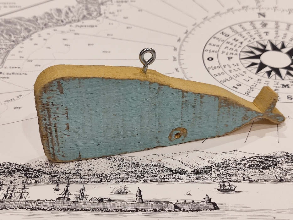balena di legno piccola da appendere