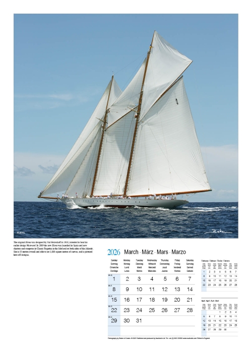 Il calendario da parete a coloriBeauty of Sail mostra una selezione dinamica e variegata di fotografie di barche a vela, prevalentemente d’epoca.