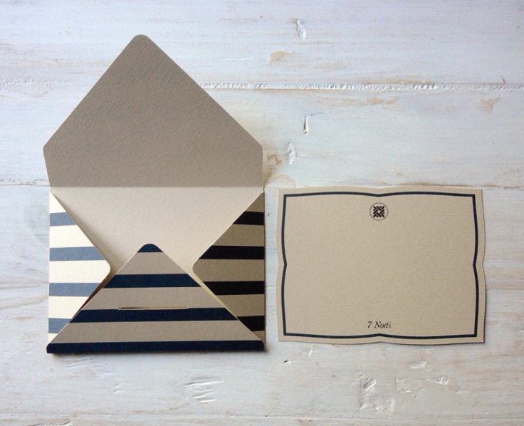 Una realizzazione di raffinata cartoleria artigianale con carta “Nettuno Fedrigoni” colorata in pasta e marcata a feltro su entrambi i lati.