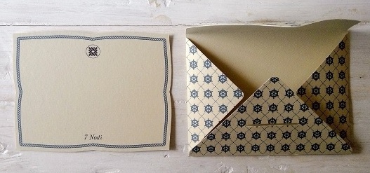 Una realizzazione di raffinata cartoleria artigianale con carta “Nettuno Fedrigoni” colorata in pasta e marcata a feltro su entrambi i lati.
