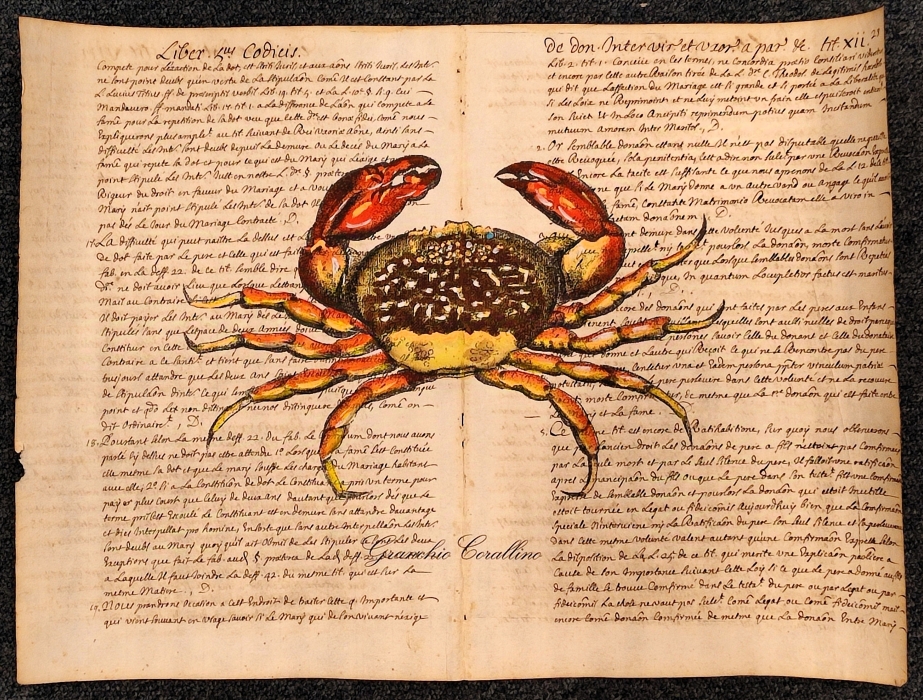 crostaceo su carta antica – granchio corallino