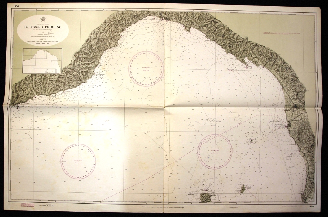 Carta nautica dell’Istituto Idrografico della Marina Italiana edita nel 1960. L’esemplare a nostra disposizione è stato ristampato e aggiornato nel 1974.