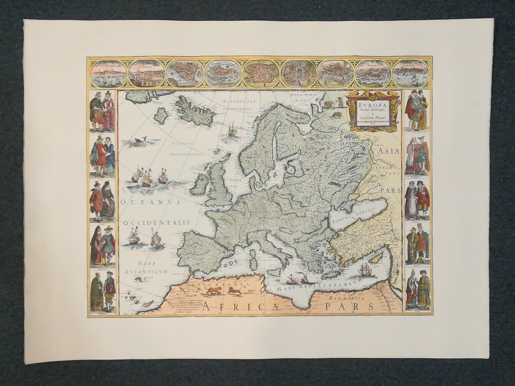 Questa riproduzione di una stampa antica (originale di Blaeu del 1640) è stata impressa con il torchio a mano su carta pregiata e acquarellata a mano da pittori esperti.