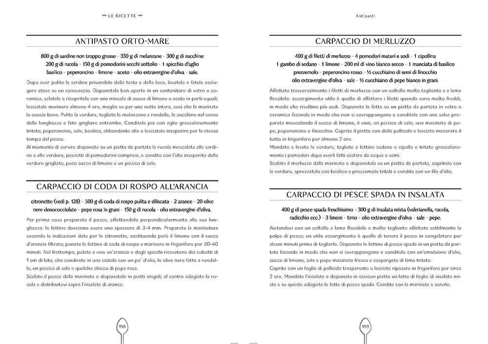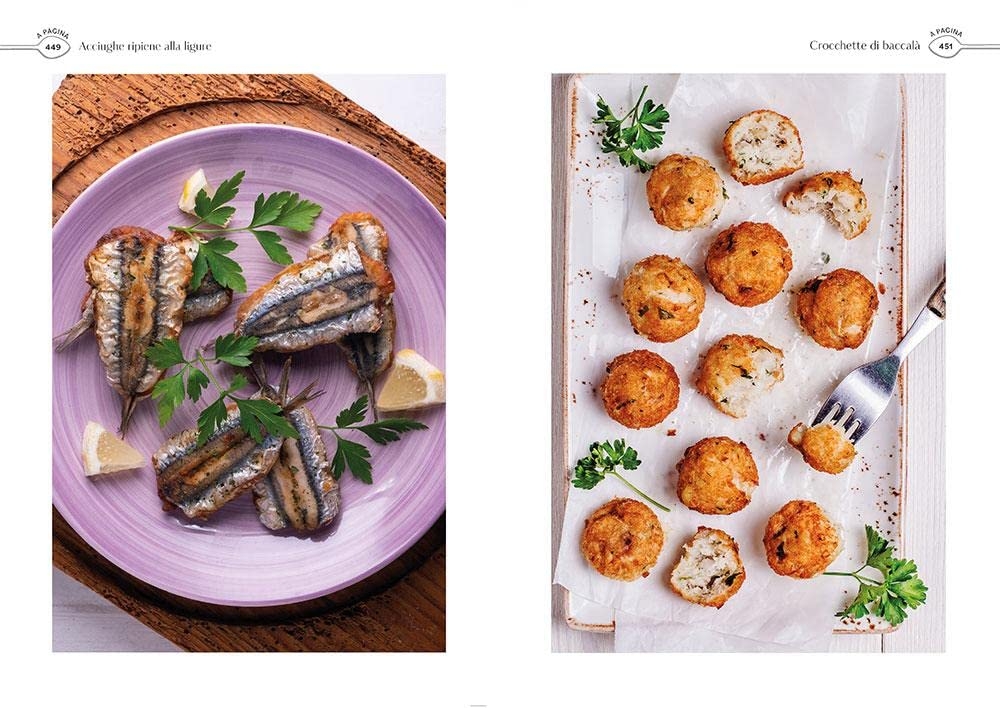 Le preparazioni di base, gli antipasti caldi, freddi e marinati, sushi e sashimi, i sughi, il pesce con la pasta e il riso, le zuppe, i brodetti e le minestre, i secondi, le sfoglie salate e le conserve.