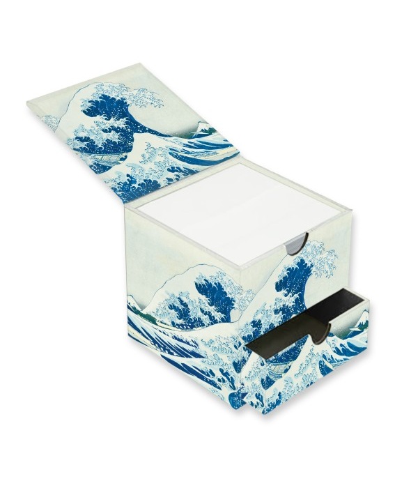 Questo portamemo, che unisce l’affidabilità e la qualità dei prodotti Flame Tree a un design raffinato, presenta l’iconica stampa di Hokusai La Grande Onda, con splendidi dettagli laminati. Contiene 450 fogli di carta quadrata, ideali per annotare appunti, messaggi e promemoria. Il pratico cassetto è perfetto per riporre piccoli oggetti o tenere in ordine la cancelleria. Carta e cartone certificati FSC.
