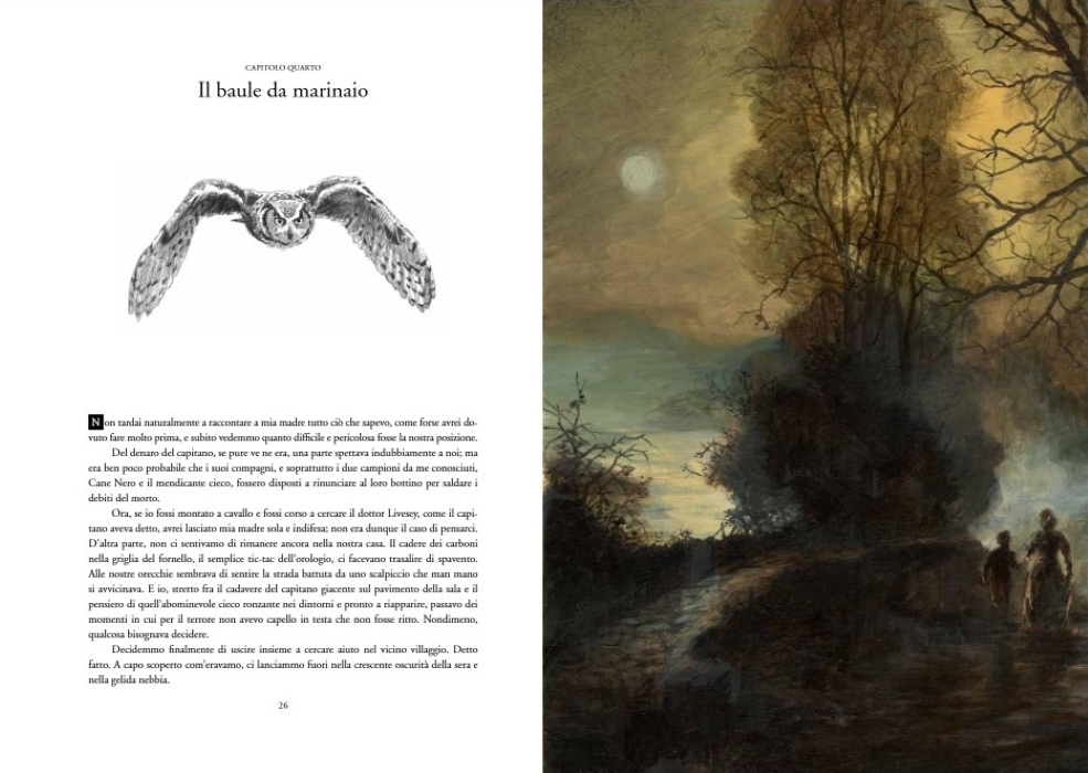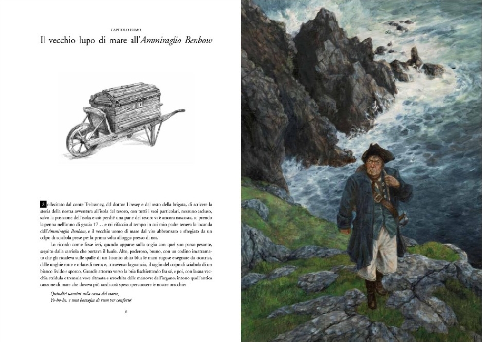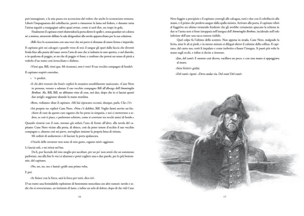 La mappa del tesoro di Flint, che Billy Bones custodiva gelosamente e che tutti i peggiori filibustieri stavano cercando, finisce invece per un gioco del caso proprio nelle mani di Jim; con il dottor Livesey e con il conte Trelawney, il ragazzo si imbarca sull’Hispaniola, alla ricerca dell’isola e del tesoro. Convinti della facilità dell’impresa e della fedeltà dell’equipaggio, i tre, affiancati da un pugno di marinai ancora fedeli, si ritroveranno invece a dover combattere contro un nutrito manipolo di pirati senza scrupoli, guidati da Long John Silver, imbarcatosi come cuoco di bordo. Per il giovane Jim, l’incontro con quest’uomo che sa essere spietato e leale, segnerà non solo il suo avventuroso battesimo del mare, ma anche il suo rito di passaggio per diventare un uomo.