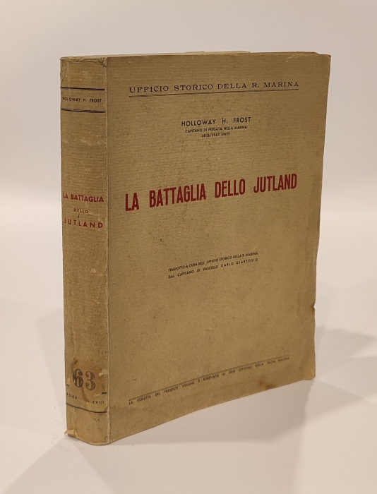 Raro esemplare della prima edizione dell’Ufficio Storico della R. Marina del 1940 (Anno XVIII dell’Era Fascista) in ottimo stato di conservazione. In-8, legatura editoriale in brossura (con qualche segno del tempo) con titolo in rosso al piatto anteriore e al dorso; ex libris dell’Ammiraglio Filippo Camperio e annotazione a penna a pag. 1 e bollo numerato applicato al dorso etichetta per la catalogazione libraria); 496 pp. (ingiallite, le prime due non numerate); con una fotografia in nero dell’autore e due fotografie in nero di navi fuori testo; numerosi schemi della battaglia e cartine in nero nel testo.