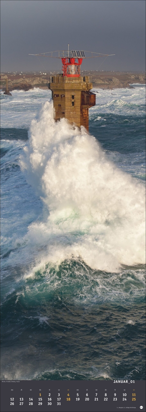 Calendario da parete con impressionanti fotografie di fari. Il formato verticale esalta la forma e le linee dei soggetti.