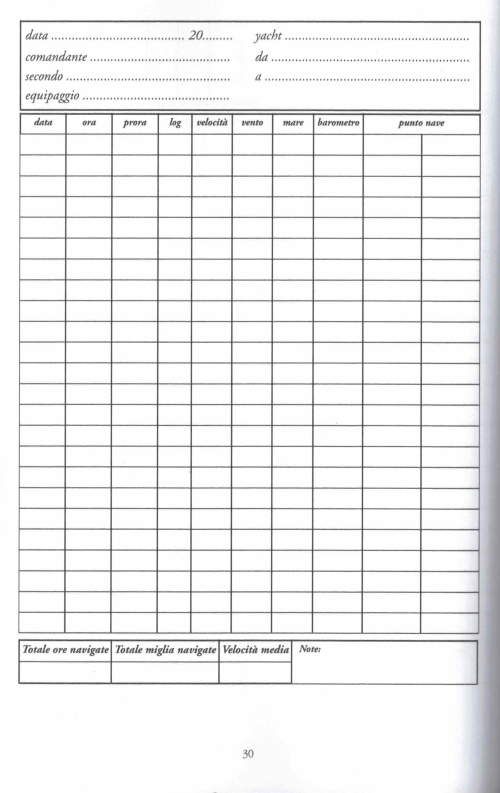 Sul libro di bordo vengono annotati la rotta seguita, le osservazioni meteorologiche, la composizione dell’equipaggio, il punto nave, gli interventi di manutenzione, il materiale imbarcato e in genere tutti i fatti inerenti alla navigazione. Si tratta, in sostanza, di un registro che il Comandante è tenuto a compilare quotidianamente.