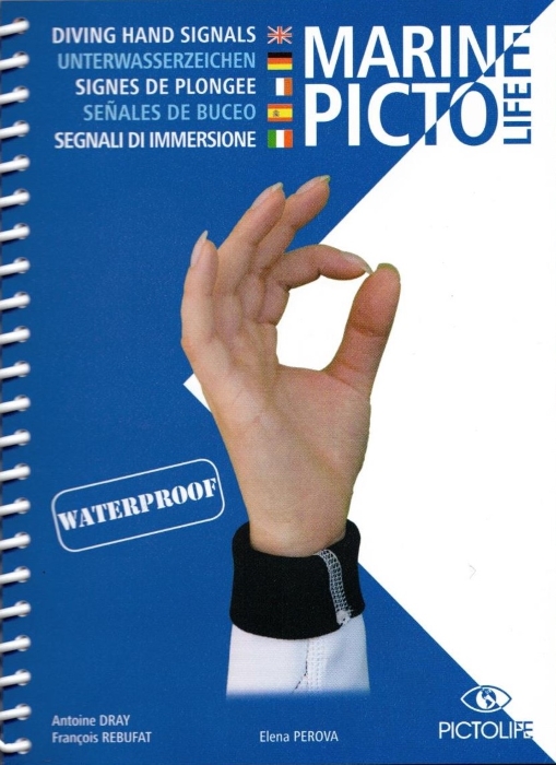 Una piccola guida in plastica resistente all’acqua che presenta i segnali di immersione subacquea: quelli utilizzati dalle principali scuole di immersione ed alri meno accademici (immersioni tecniche, creature marine, ecc.). In tutto, quasi 200 segnali sono presentati con l’aiuto di foto, ciascuna accompagnata da un codice QR che rimanda il lettore ad un video.