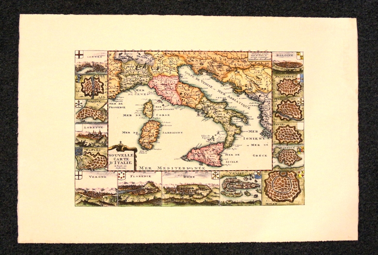 Questa riproduzione di una stampa antica (originale di De La Feuille del 1720) è stata impressa con il torchio a mano su carta pregiata e acquarellata a mano da pittori esperti.