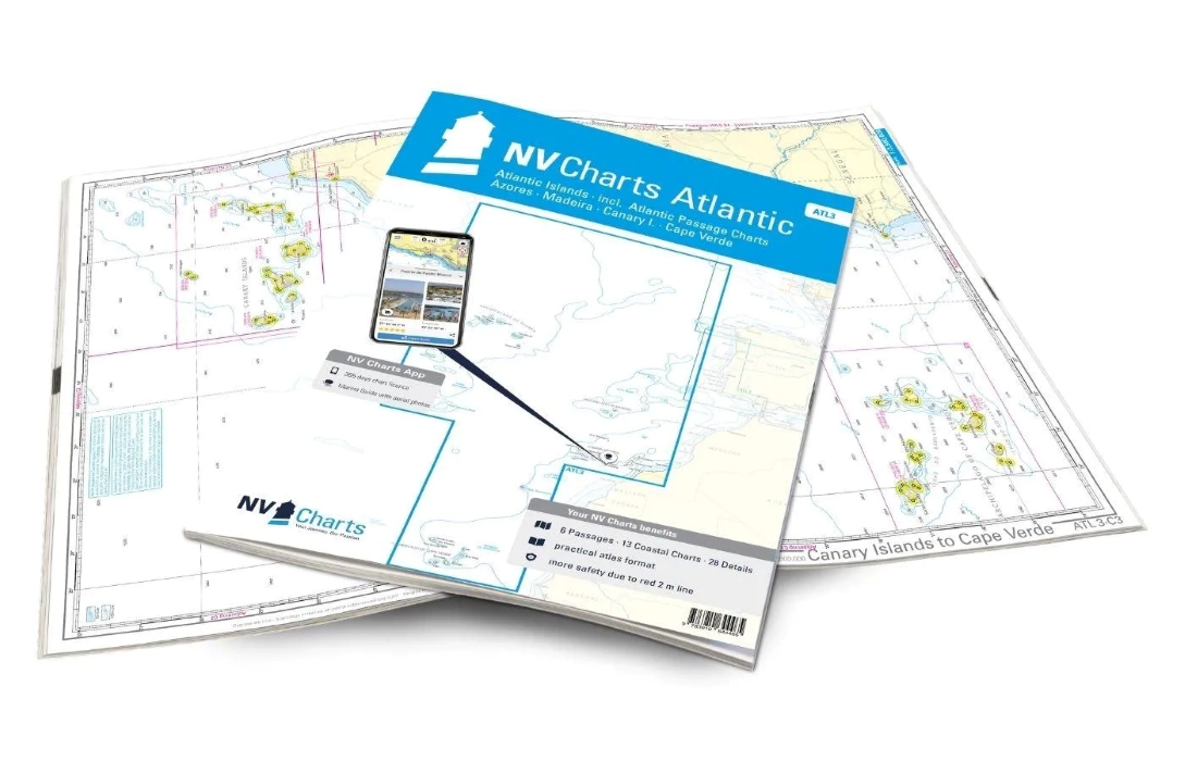 If you want to embark on the great adventure of crossing the Atlantic, the NV Charts Atlantic ATL3 is ideally equipped. Thanks to the clear layout, the recreational skipper can quickly find approaches, harbours and anchorages and is informed of navigationally important details that also appear in the NV Charts app. The chart series impresses with its optimised dimensions and balanced sheet sections. The Atlantic Islands – the archipelagos of Madeira, the Canary Islands, the Azores and Cape Verde – are also described in detail in this atlas. If you want to go there, you may be drawn even further towards the Caribbean. But the map set is also ideal for travelling to or from the respective island groups.