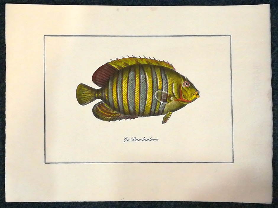 Questa riproduzione di una stampa antica (originale tratto da “L’histoire naturelle des poissons” di Marcus Elieser Bloch) è stata impressa con il torchio a mano su carta pregiata e acquarellata a mano da pittori esperti.