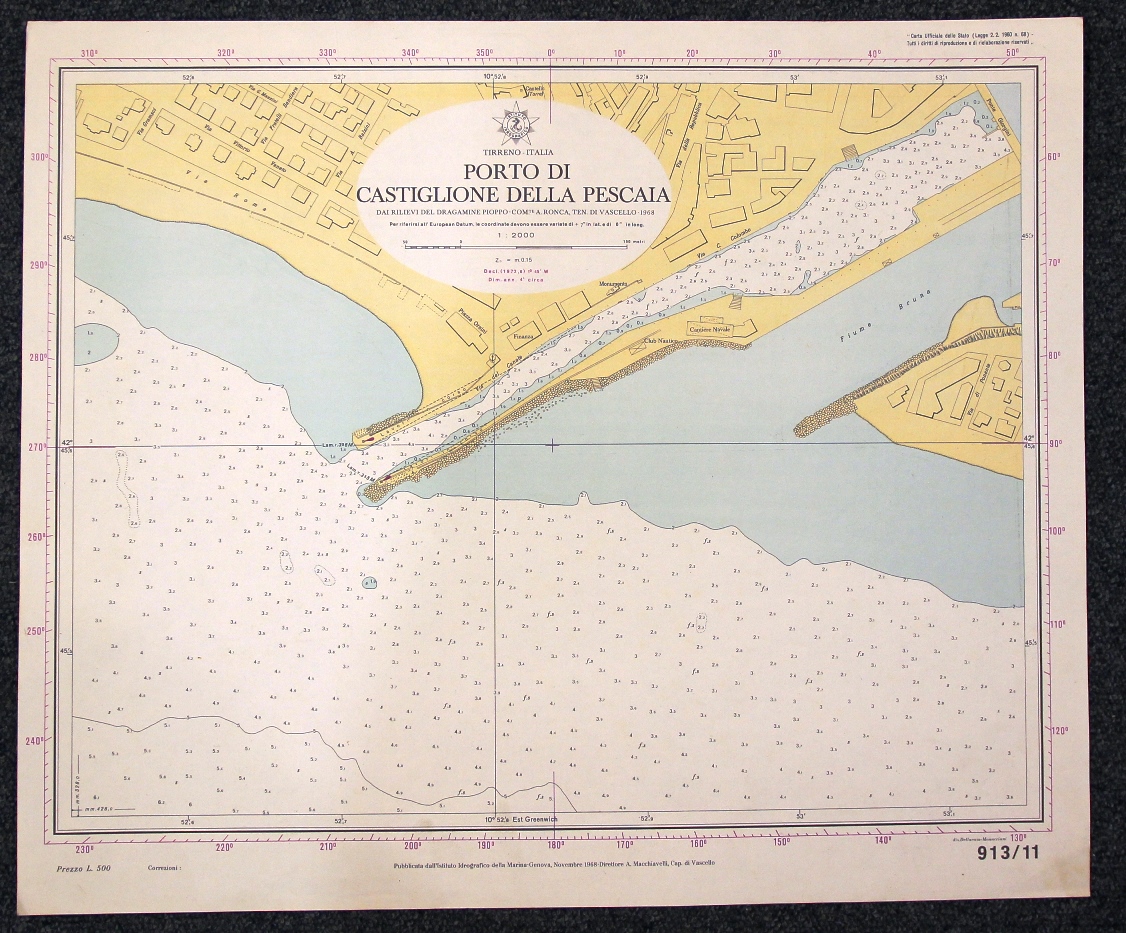 Carta nautica dell’Istituto Idrografico della Marina Italiana edita nel 1968. L’esemplare a nostra disposizione è stato ristampato e aggiornato nel 1969.
