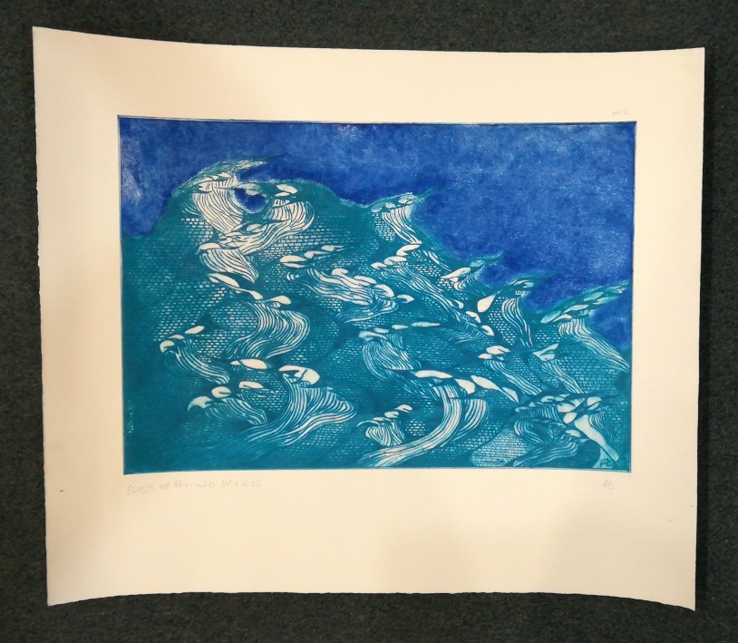 La tecnica della puntasecca consiste nell’incidere a mano una lastra di zinco con una punta Haden type di acciaio temprato. Sui bordi dei solchi ottenuti si creano piccoli filamenti metallici, detti barbe, che trattengono l’inchiostro. Subito dopo, si pone sulla lastra inchiostrata a mano un foglio di carta cotone Hahnemuhle che viene fatto passare attraverso due rulli: la pressione tra il foglio e la lastra permette lo stampo e la colorazione del disegno.