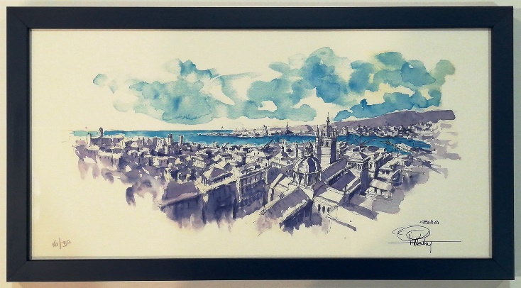 Stampa che riproduce un acquerello di Patrizia Pittaluga.