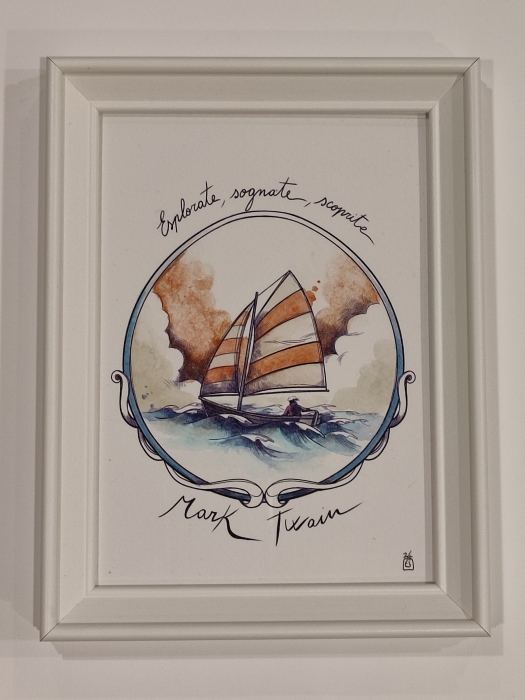 Stampa su cartoncino e acquarellata a mano ispirata alla poesia “Tra vent’anni sarete più delusi” di Mark Twain.