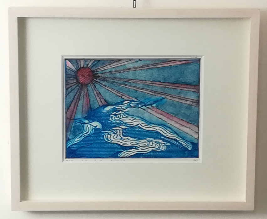 La tecnica della puntasecca consiste nell’incidere a mano una lastra di zinco con una punta Haden type di acciaio temprato. Sui bordi dei solchi ottenuti si creano piccoli filamenti metallici, detti barbe, che trattengono l’inchiostro. Subito dopo, si pone sulla lastra inchiostrata a mano un foglio di carta cotone Hahnemuhle che viene fatto passare attraverso due rulli: la pressione tra il foglio e la lastra permette lo stampo e la colorazione del disegno.
