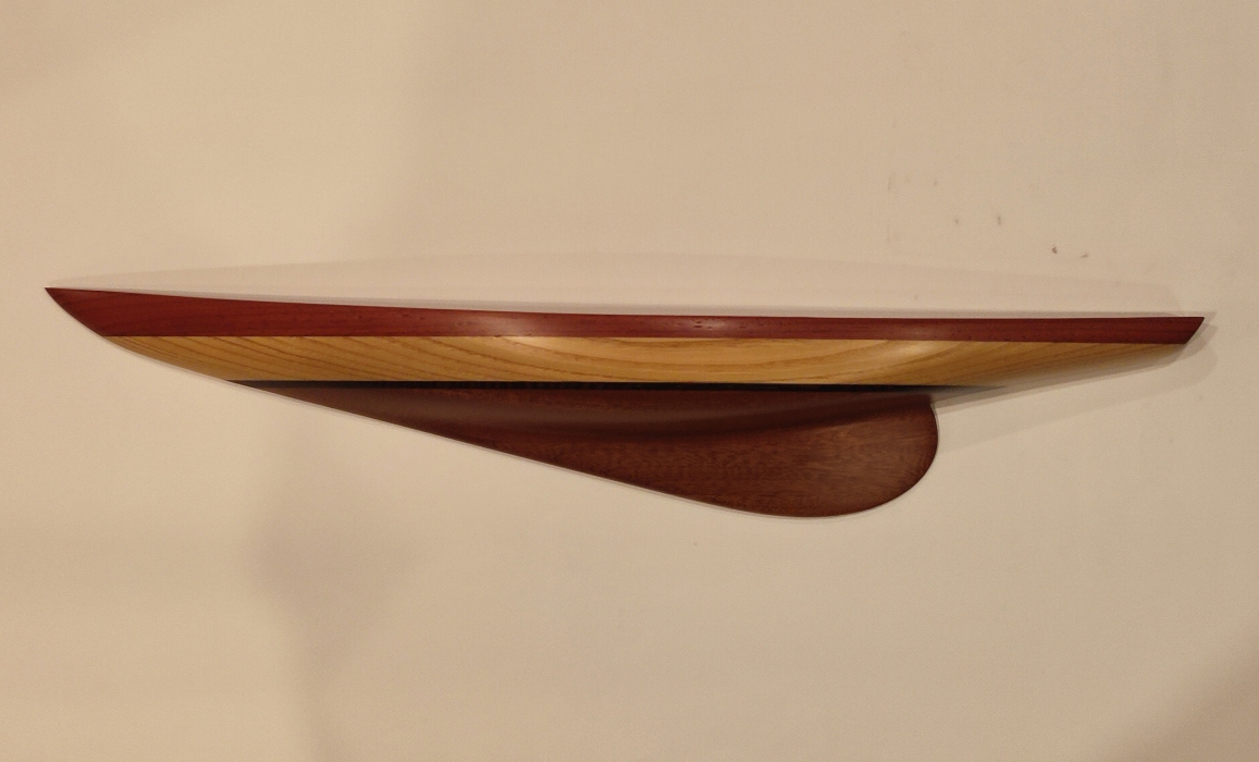 Mezzo scafo in legno che riproduce la barca a vela Requin, progettata nel 1930 da Gunnar L. Stenback.