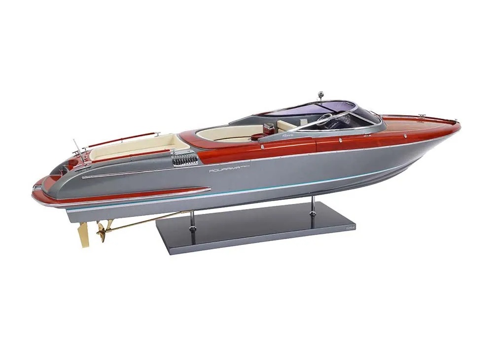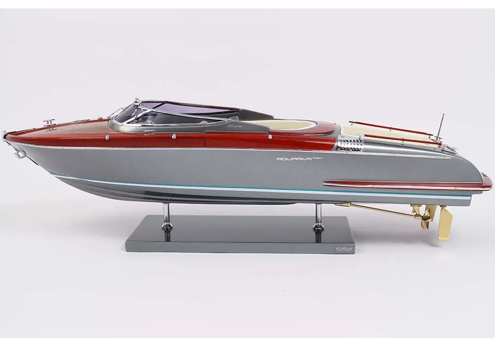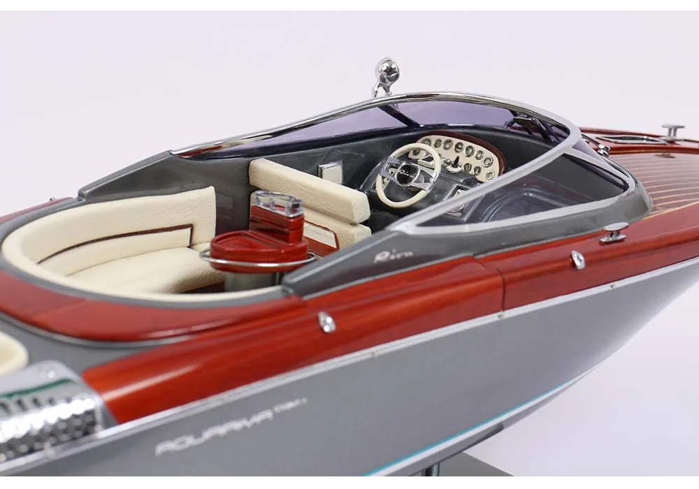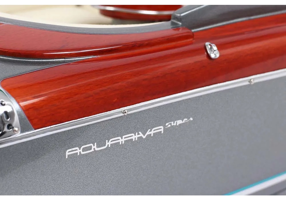 Un oggetto davvero eccezionale: questo esclusivo modello ufficiale del Riva Aquariva Super è stato creato in collaborazione con il cantiere navale Riva. È una replica fedele del leggendario Aquariva Super, interamente realizzata a mano con materiali di alta qualità: vera vetroresina e autentici rivestimenti nautici. Tutti gli accessori sono realizzati su misura in ottone cromato da gioiellieri esperti. Vengono applicati dieci strati di vernice per ottenere un’eccellente lucentezza e profondità, per una finitura eccezionale.