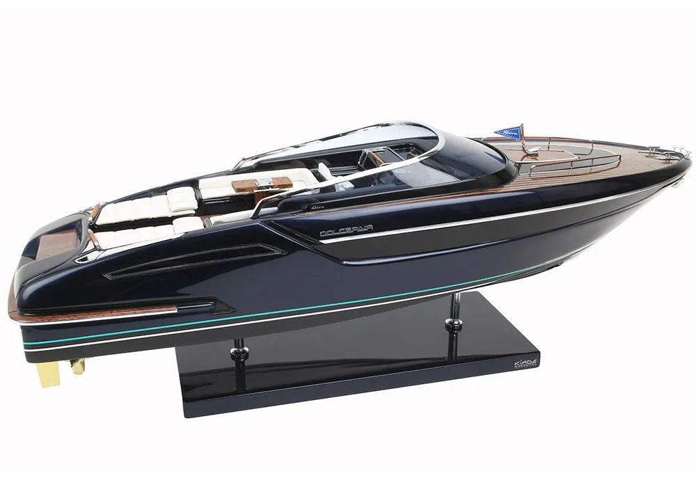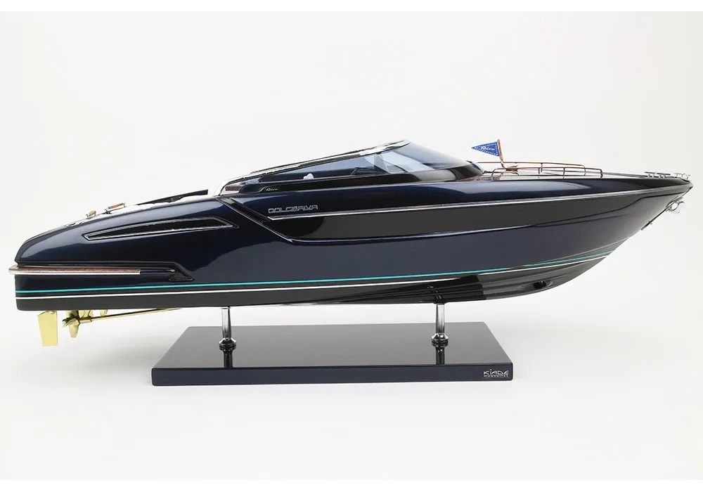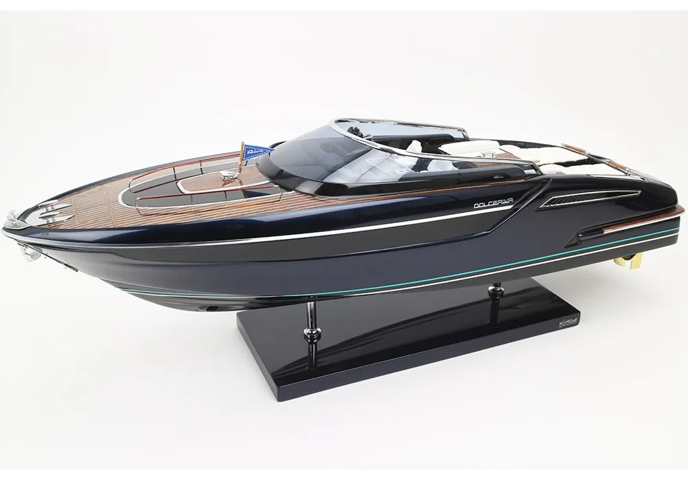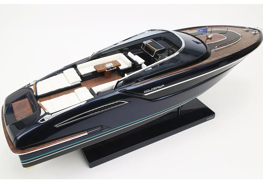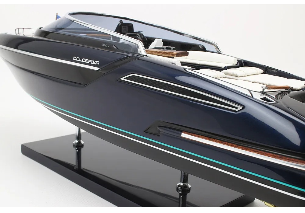 Un oggetto davvero eccezionale: questo esclusivo modello ufficiale del Riva Dolceriva è stato creato in collaborazione con il cantiere navale Riva. È una replica fedele del leggendario Dolceriva, interamente realizzata a mano con materiali di alta qualità: vera vetroresina e autentici rivestimenti nautici. Tutti gli accessori sono realizzati su misura in ottone cromato da gioiellieri esperti. Vengono applicati dieci strati di vernice per ottenere un’eccellente lucentezza e profondità, per una finitura eccezionale.