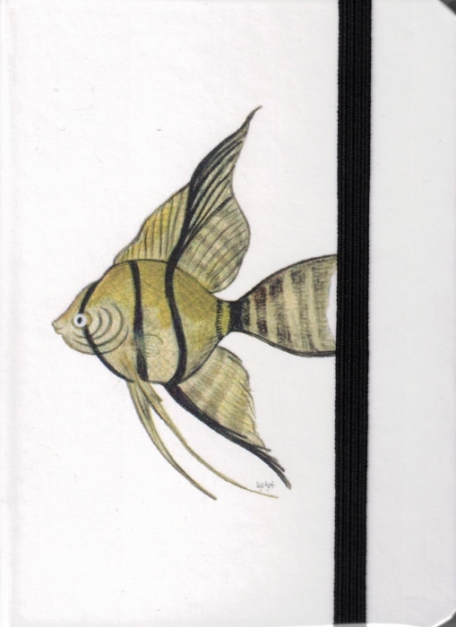 Taccuino con elastico, angoli arrotondati e pagine bianche. Lo scalare stampato in copertina riproduce fedelmente un disegno originale di Guja Ajolfi.