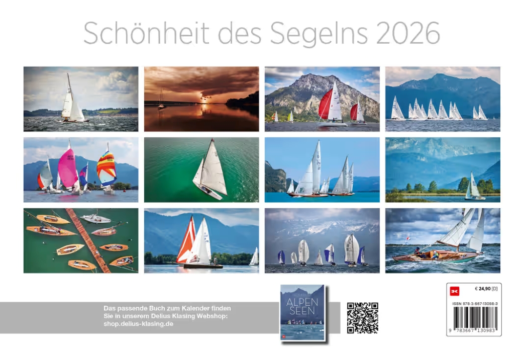 I laghi alpini offrono un’area di navigazione molto speciale: pur essendo alti sul livello del mare, infatti, consentono di praticare la vela in tutta libertà, che si tratti di regate sportive o crociere rilassanti con un piccolo equipaggio, sia su classiche vele d’epoca in legno sia su moderne barche high-tech: attraverso le suggestive immagini di questo calendario da parete potrete coltivare per tutto l’anno la vostra sete di navigazione davanti a uno stupendo sfondo alpino.