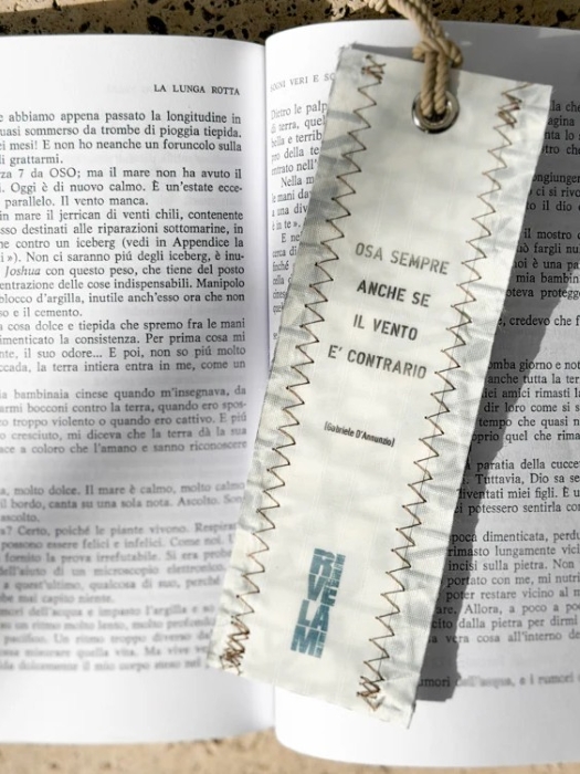 Realizzati con vele riciclate, i segnalibri di Rivelami, custodiscono frasi celebri ispirate dal mare.