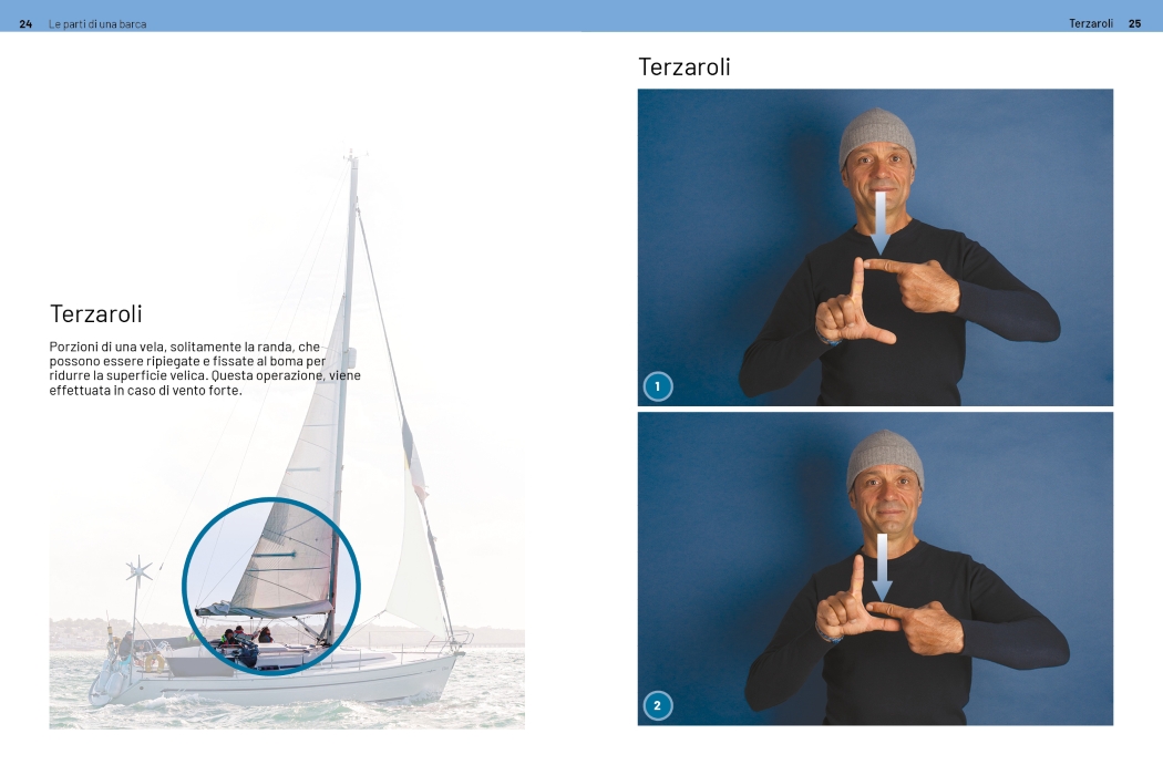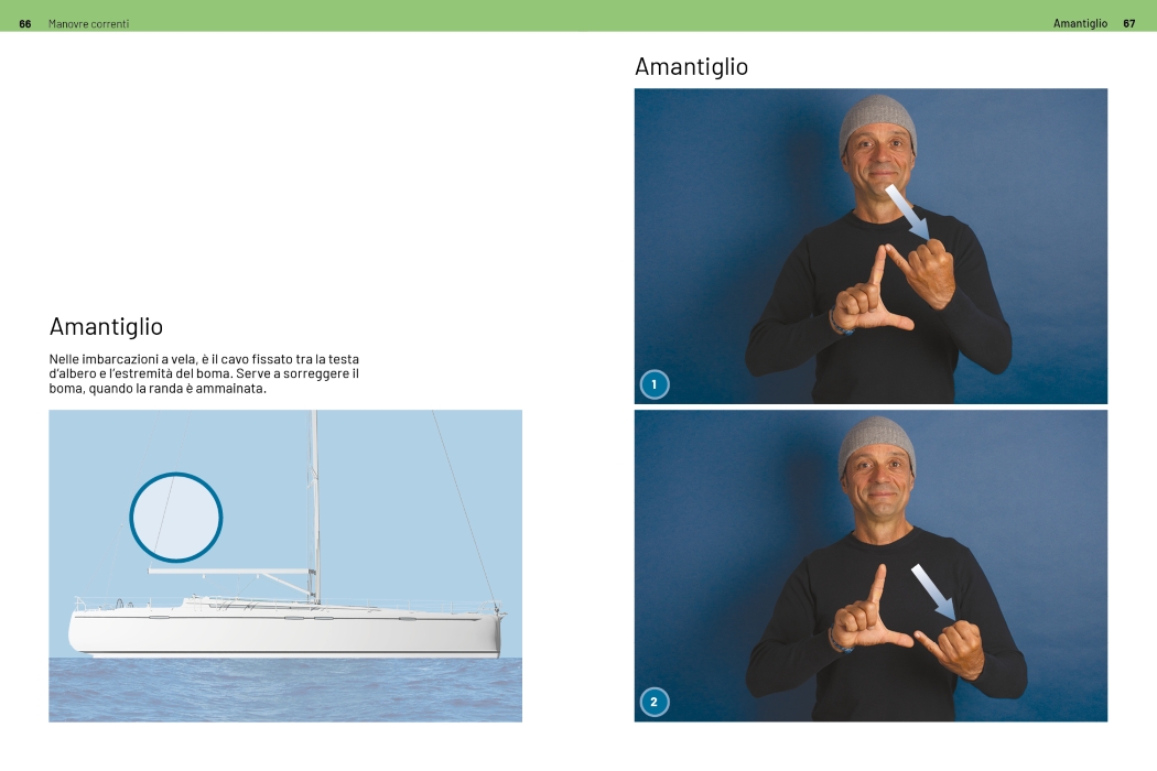 Comunicare con i segni, e in modo preciso, anche in barca. È la grande ambizione di questo manuale, primo in Europa, e probabilmente nel mondo, nel presentare una serie articolata di segni a tema nautico. Una rivoluzione per i sordi, ma un supporto prezioso per qualsiasi equipaggio, dato che in barca spesso non è affatto facile comunicare fra prua e poppa, specie quando il vento fischia, le vele sbattono o il motore è acceso.
