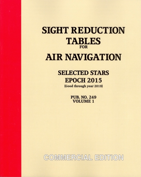 First volume of the series “Sight reduction tables for air navigation” which consists of three volumes of comprehensive tables of altitude and azimuth designed for the rapid reduction of astronomical sights in the air.