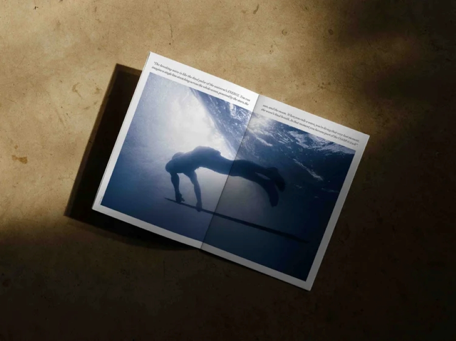 Grandi pagine di carta riciclata, ruvide e porose come solo le gore di sale lasciate dal mare sanno essere, ampi spazi bianchi, puri come un orizzonte sul mare e storie coinvolgenti, per entrare in sintonia con un’emergente comunità che guarda agli Oceani come crocevia dei destini del pianeta.